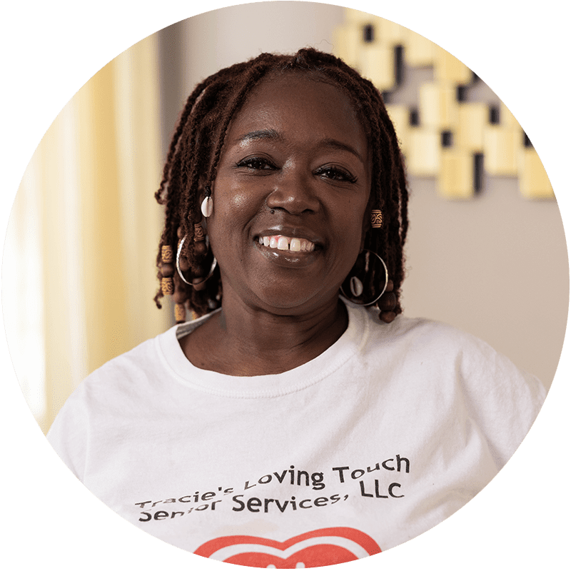 Because of her desire to help elderly and disabled people, she took a leap of faith and started Tracie’s Loving Touch Senior Services, LLC in 2017. Her clients love her, and she’s earned a strong and positive reputation with the State, Insurance companies, and the VA. Through her work, she provides housekeeping, laundry, meal prep, grocery shopping, and assistance with personal care needs for her clients, and she strives to help seniors stay in their homes and maintain independence.